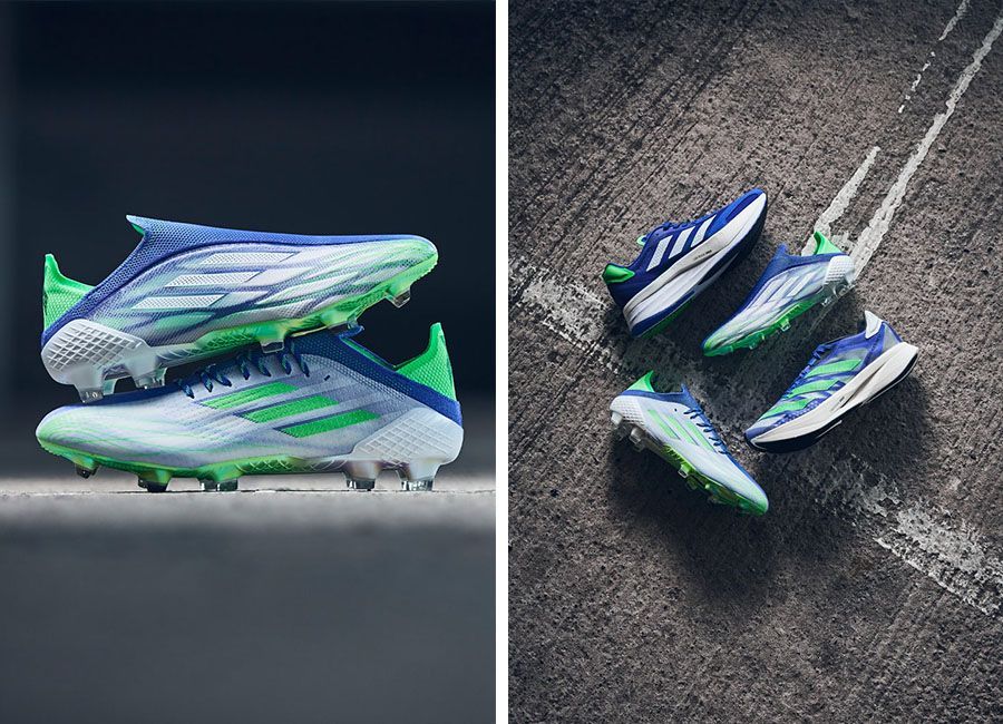 Giao diện bộ sưu tập giới hạn được tinh chỉnh trên giày đá bóng Adidas X Speedflow + và X Speedflow.1, với màu xanh lam là gam màu chủ đạo cho cả hai. Trên ảnh là mẫu X Speedflow + cho thấy các gam màu chính thức là "Xanh lam đậm / Trắng / Đỏ", với màu xanh lam chiếm vai trò chủ đạo, xen kẽ bởi màu xanh lam là gam màu trắng, với các tia sáng "Màu xanh lá cây nổi bật" thấp thoáng ở gót chân và phần mặt đế, thêm vào đó vẫn là cấu trúc mặt đế được làm từ công nghệ Carbitex (sợi carbon).