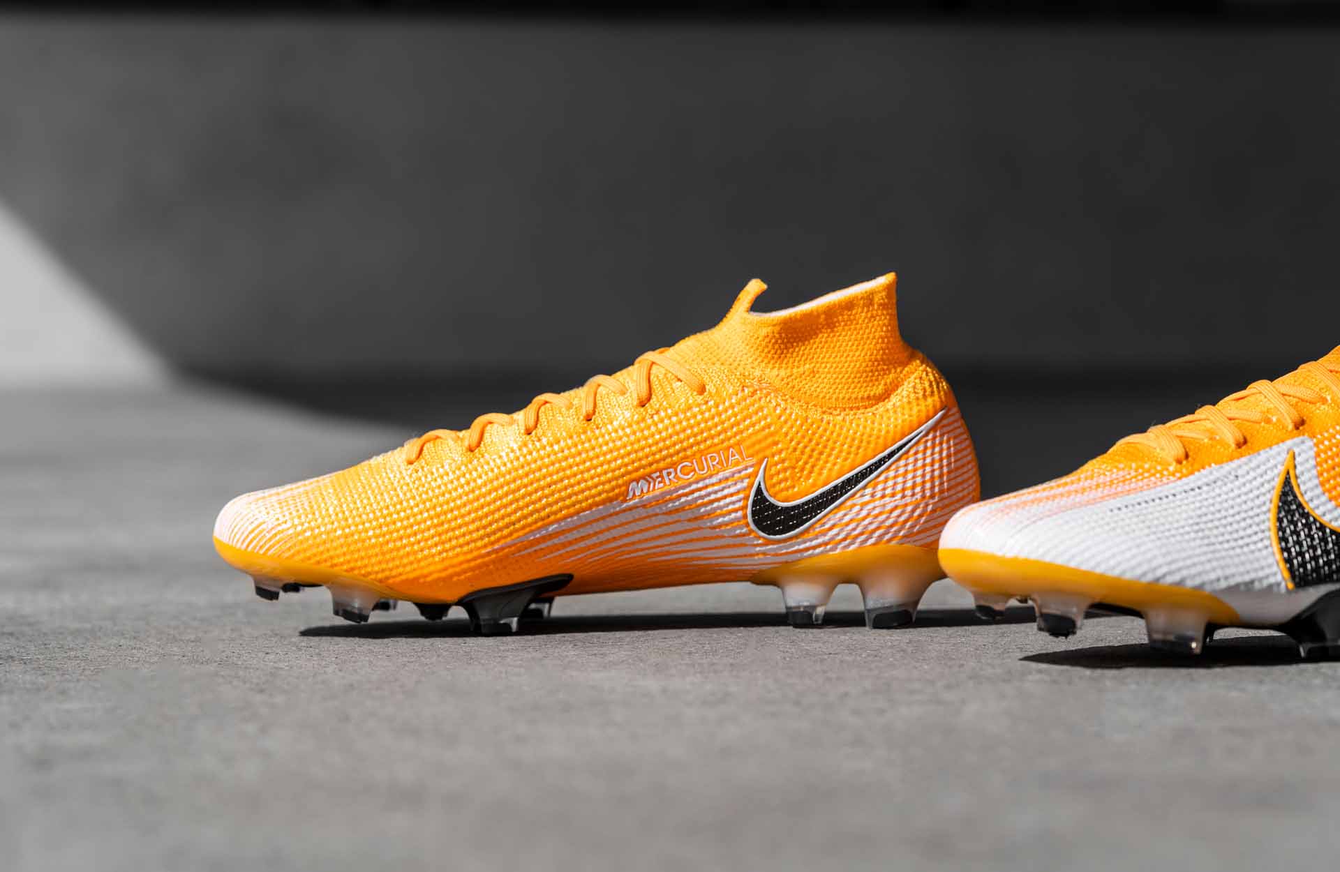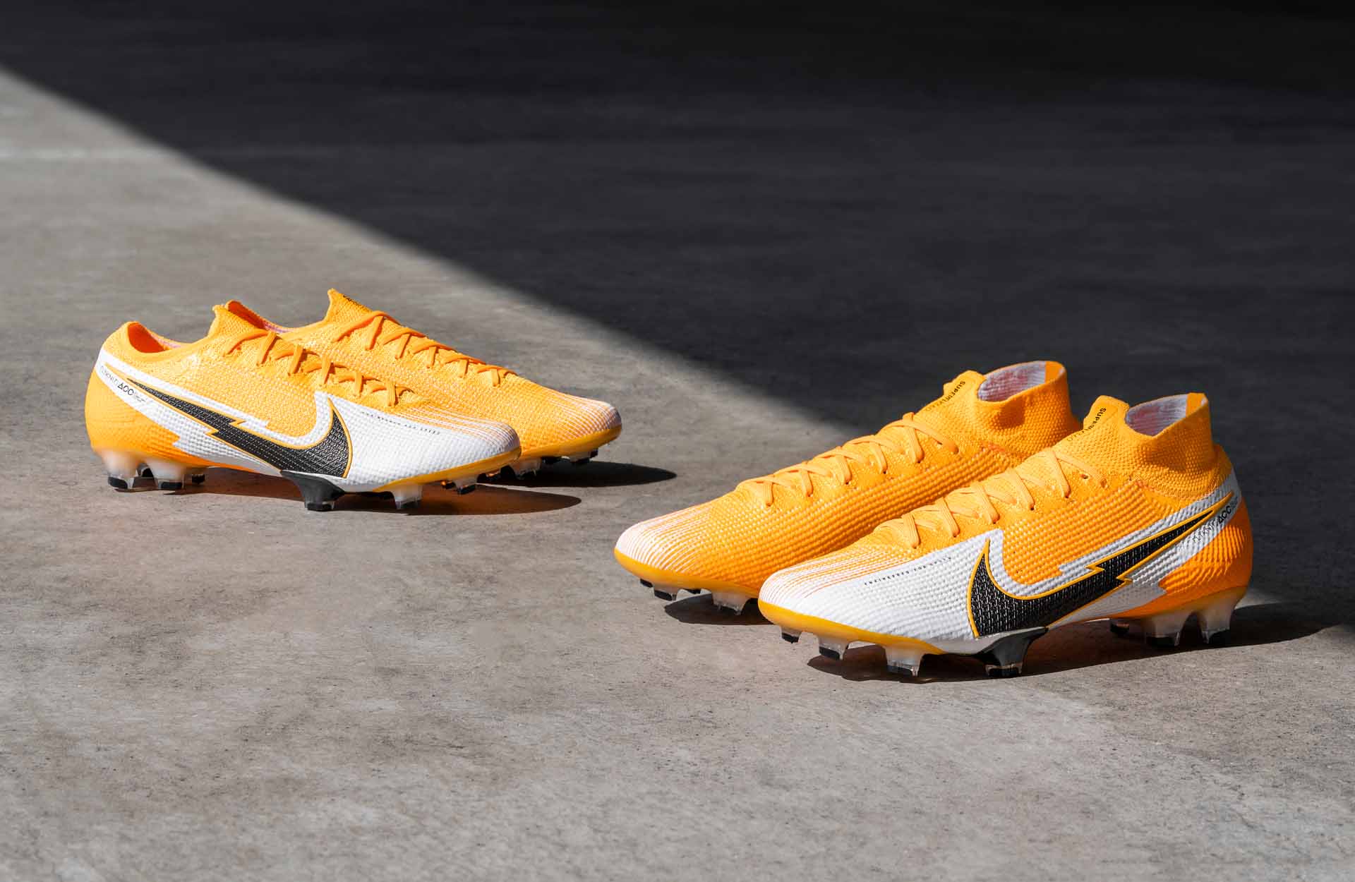 Với giày đá bóng Nike Mercurial, dòng giày được đánh giá là thành công nhất của Nike trong năm 2020, gam màu mới Laser Orange/Black/White (cam sáng/đen/trắng) được lựa chọn trên cả hai phiên bản Mercurial Superfly VII và Vapor XXII. Đáng chú ý, trong lần cập nhật mới này, logo Nike không còn xuất hiện trên thân giày, thay vào đó là logo hình tia chớp, khá giống với logo của bộ sưu tập trước đó ''Neighborhood Pack''. Cũng kể từ đó, logo này cũng xuất hiện khá nhiều trên những đôi giày sneaker của hãng như một phần của bộ sưu tập Euro Tour của nhà Nike. Và lần này, hãng vẫn tiếp tục sử dụng chi tiết này, mặc dù chỉ xuất hiện trên 2 phiên bản Superfly và Vapor.