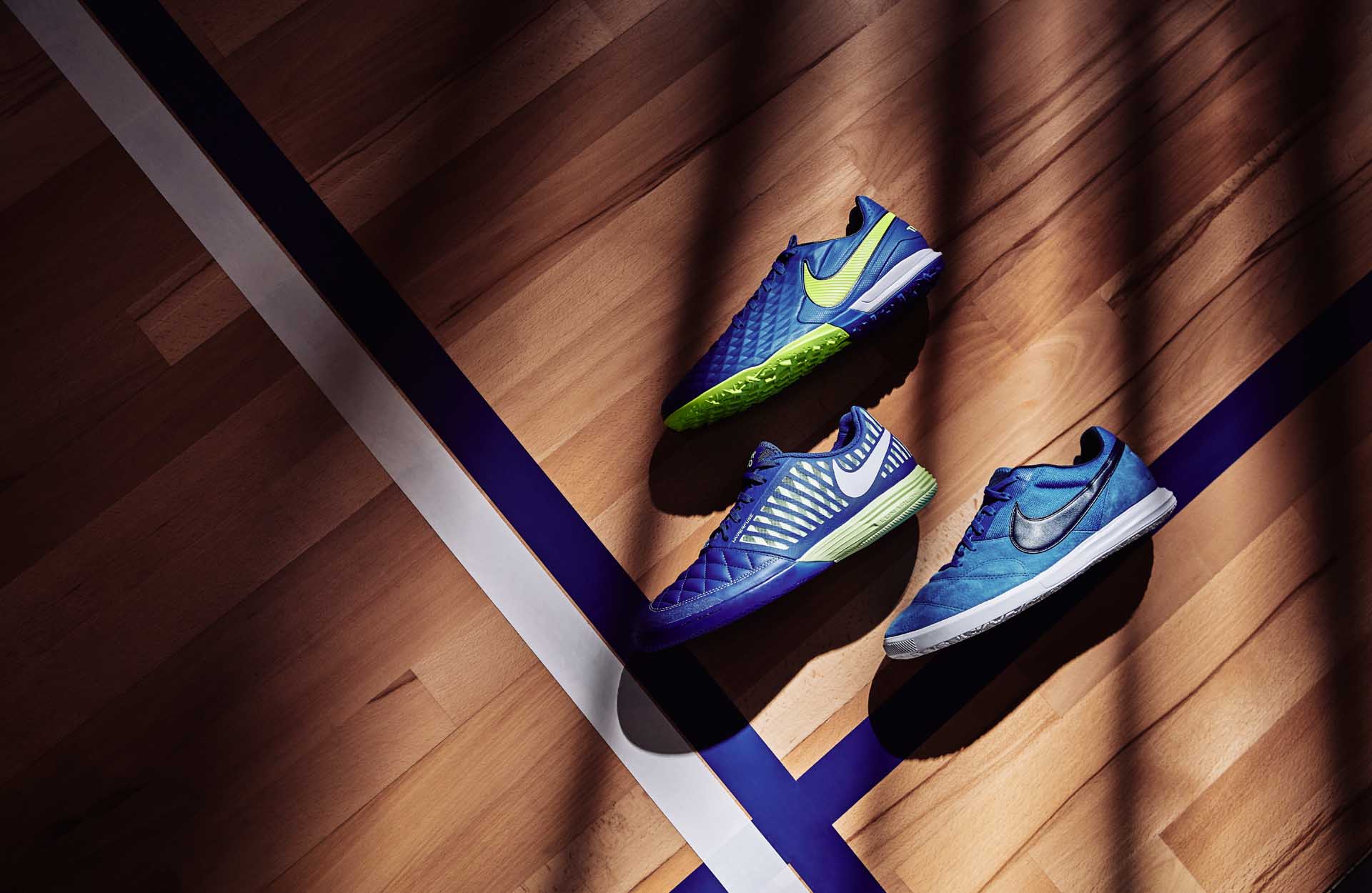 Nike cho ra mắt bộ sưu tập Skycourt Pack, bao gồm các mẫu giày React Gato, Lunar Gato, Premier II Sala và Tiempo Legend với sắc xanh đồng nhất và vẻ đẹp của tia chớp.